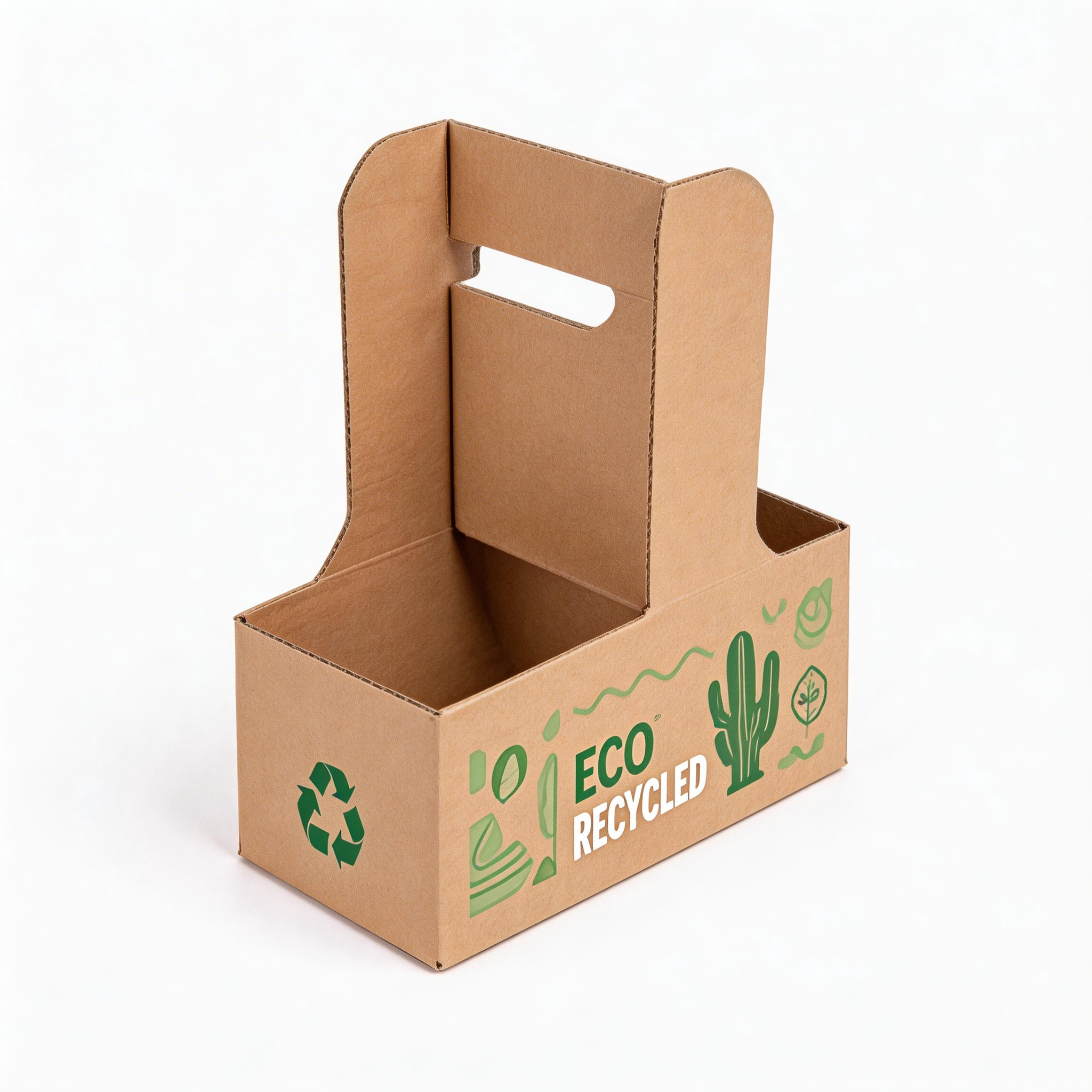 The 2 cup coffee carrier with handle is a practical packaging solution designed for safe and convenient beverage transport. Made from sturdy corrugated cardboard or molded pulp, it securely holds two cups in place, reducing spills during takeaway or delivery. The integrated handle ensures easy carrying, making it ideal for busy cafes and coffee shops. Fully customizable with branded printing, colors, and eco-friendly materials, it enhances brand visibility while supporting sustainability goals. Perfect for hot or cold drinks, this carrier combines strength, functionality, and a clean design to improve customer experience and on-the-go convenience.